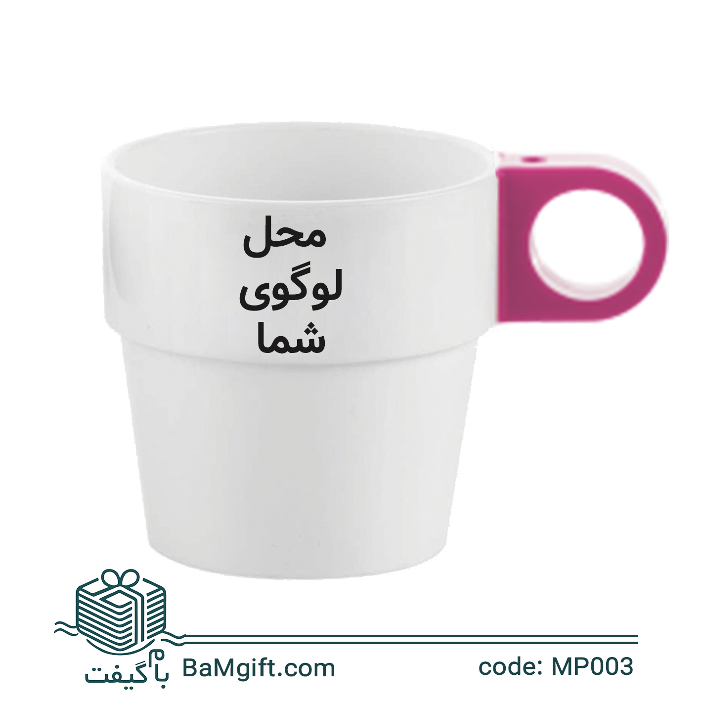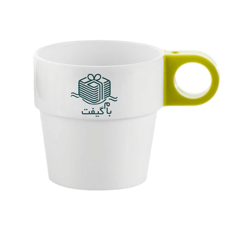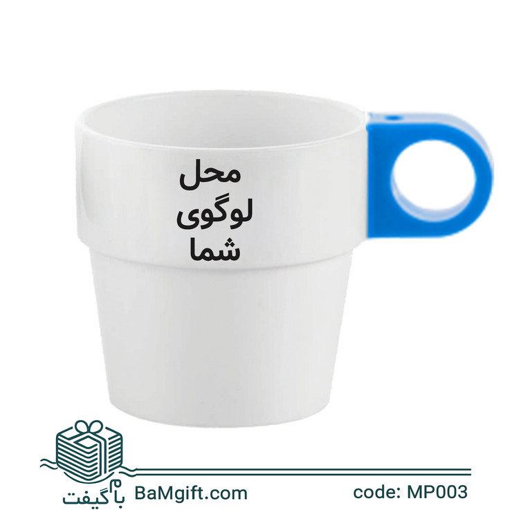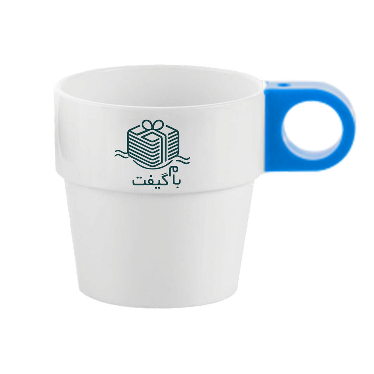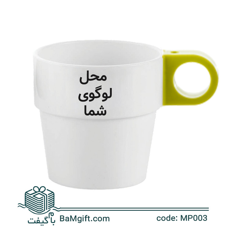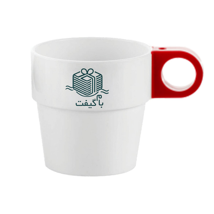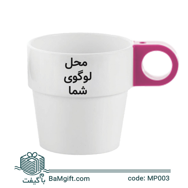 لیوان پلاستیکی تبلیغاتی سفید دسته رنگی | چاپ اختصاصی لوگو در 6 رنگ | MP003
